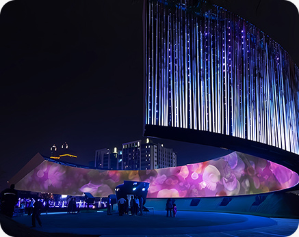 數(shù)字信息時代,華竣數(shù)創(chuàng)運用燈光秀、超清視頻、特種影院等新媒體視覺藝術(shù)的聲光影電炫酷效果調(diào)動觀者的所有感官全身心參與展廳視聽體驗,享受沉浸式心流狀態(tài)。