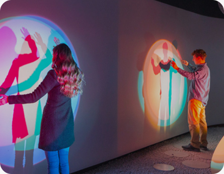 華竣將國際先進的多媒體創(chuàng)意互動科技與硬件設(shè)備應(yīng)用于展館中如AR/VR/MR、機械藝術(shù)裝置、結(jié)構(gòu)投影等等,